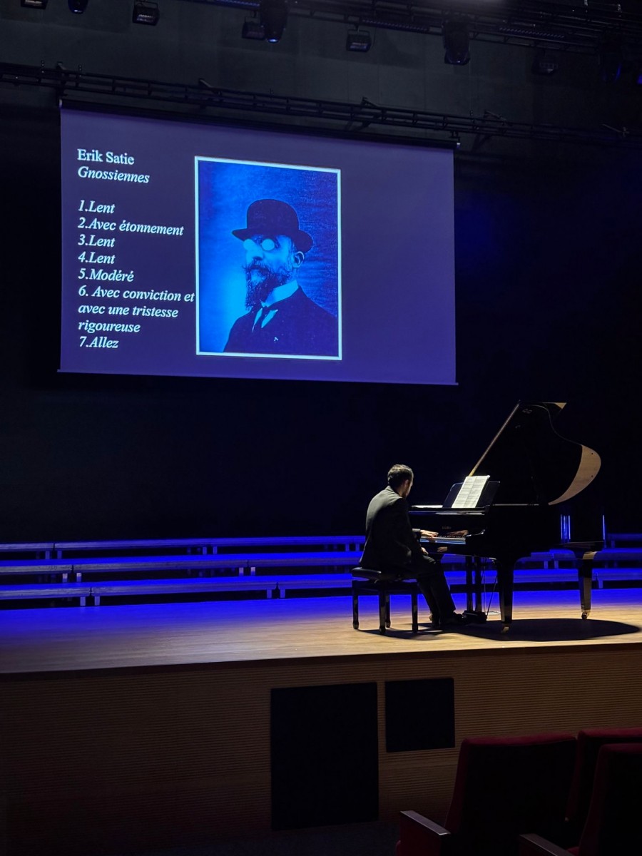 12 Kasım 2025 Çarşamba günü, Rüveyde – Yüksel Ergen Konser Salonu’nda Mehmet Fatih Turan (piyano) tarafından “Satie 100” başlıklı, Erik Satie’nin 100. ölüm yılı anısına bir konser gerçekleştirildi. Konserde, E. Satie'nin eserlerinden oluşan bir repertuvar seslendirildi.